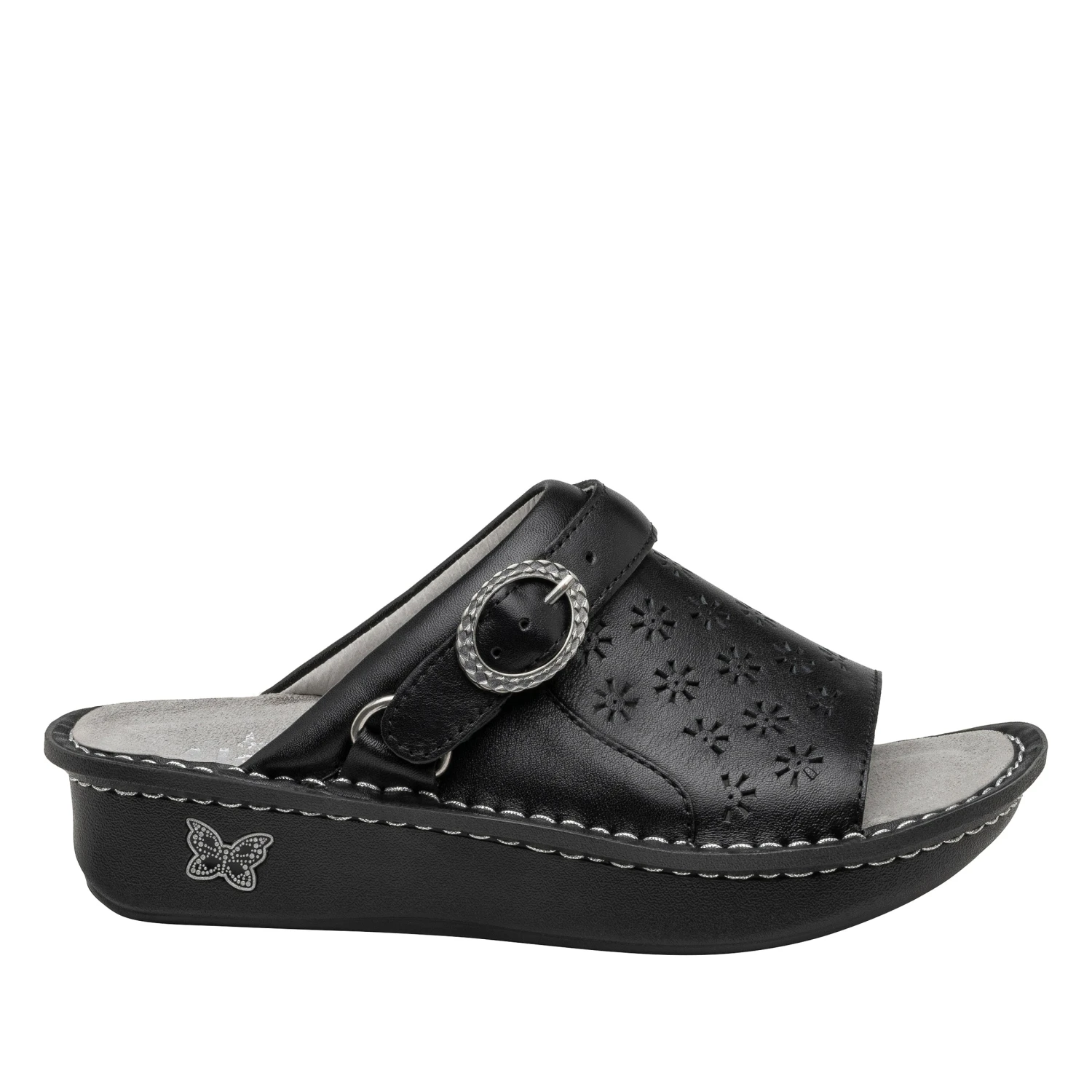 Featured with a dainty perforated pattern on Black Butter genuine leather.