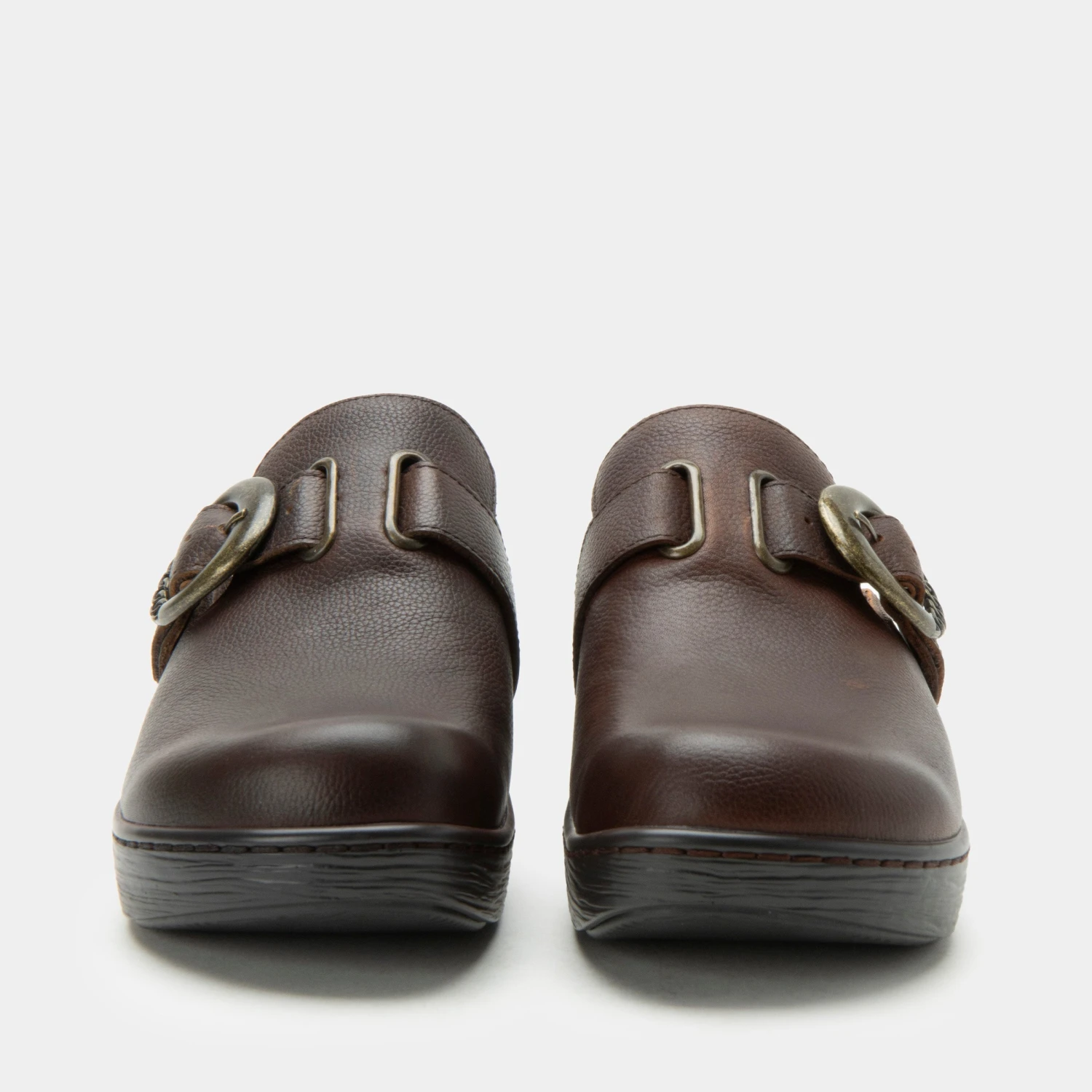 Step into effortless style and unbeatable comfort with a trendy backless slip-on leather clog. The stylish buckle ornament adds a touch of sophistication, elevating this classic design with a modern edge. Featuring a comfortable wood look rocker sole, these clogs provide the perfect combination of height, support, and all-day comfort. The convenient backless design makes them easy to slip on and off, perfect for busy days or casual outings.ย