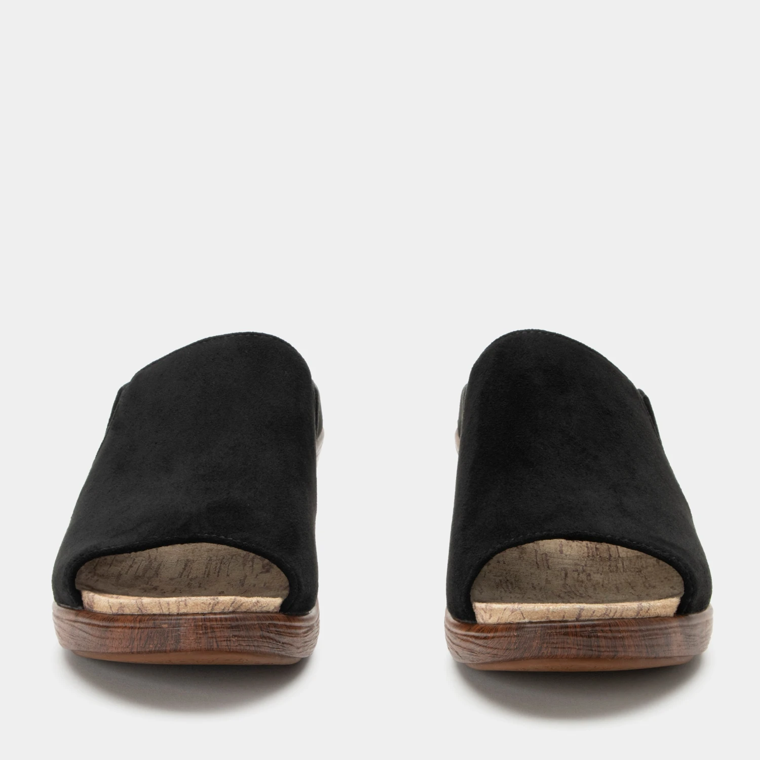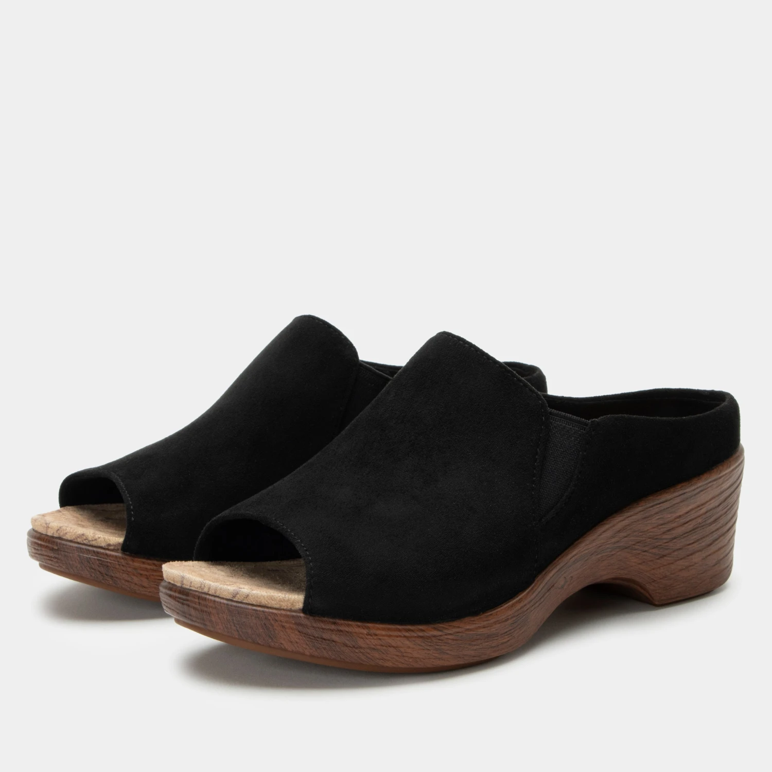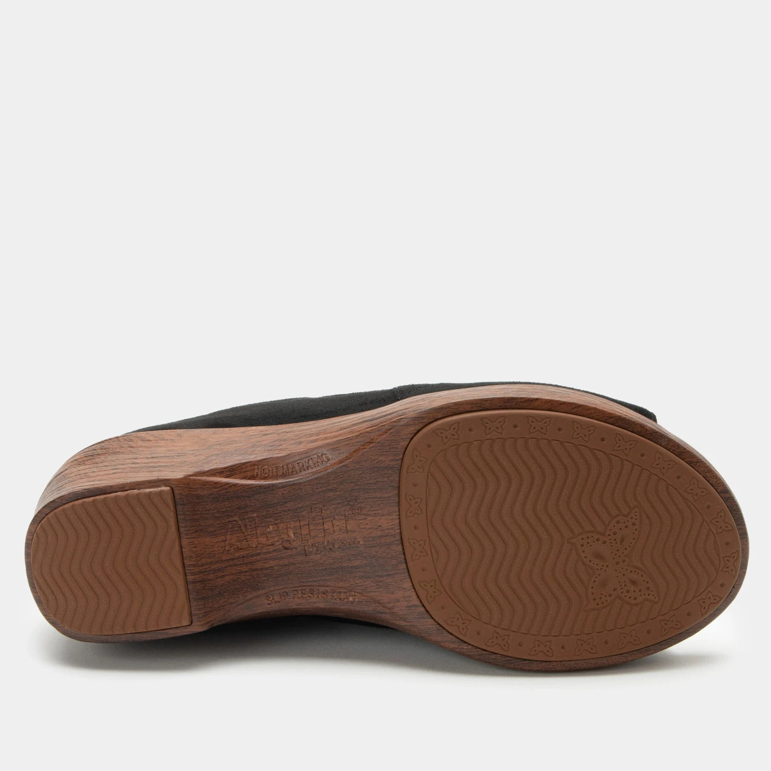Think you know clogs, think again. This contemporary open-toe style is detailed in a micro suede stretch upper that gently hugs the foot. For added security on the go, thereโs a subtle heel rim that holds the foot in place and stretchy side gore. Hidden inside is a contoured memory foam and cork footbed set into a featherweight wood look wedge outsole.