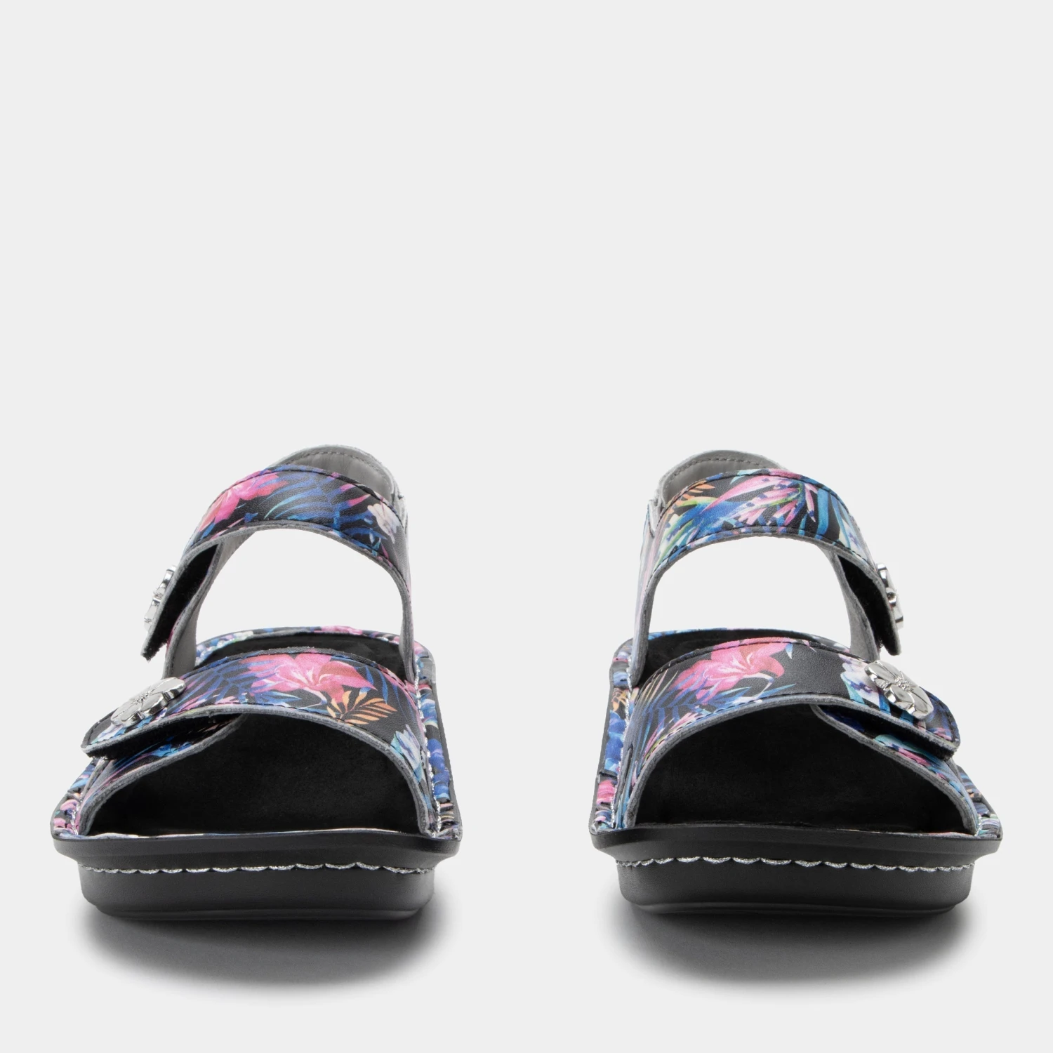 The Vienna sandal is an easy to wear two strap slingback sandal with perfectly matched delicate ornamentation on the straps. Designed with a variety of fun patterns and colors, this style is sure to complement your summer wardrobe. The sandal features our Mini outsole constructed to mimic a natural rocking motion for improved pressure distribution across the bottom of the foot, and an ergonomically designed footbed that conforms the natural contour of the foot, working to relieve legs, hip and back from long standing hours.